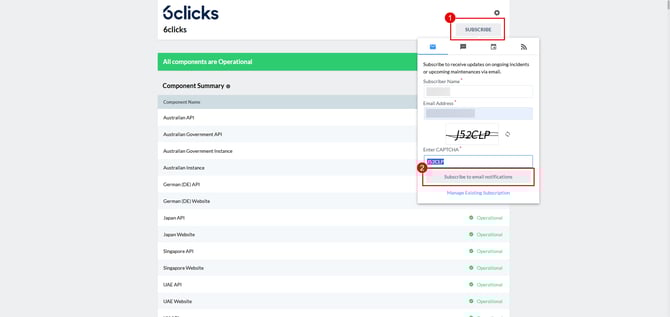 To receive updates via email for maintenance specific to your region, click the Subscribe button at the top of the page and fill out the form.