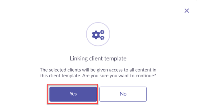Once completed, a confirmation will appear prompting you that the content is now in the client template.