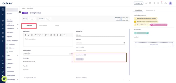 ابحث عن حقل أعضاء الوصول في علامة التبويب نظرة عامة لمشكلة/حادث. يمكنك إضافة/إزالة المستخدمين من الحقل؛ حيث يتم حفظ التغييرات تلقائيًا.