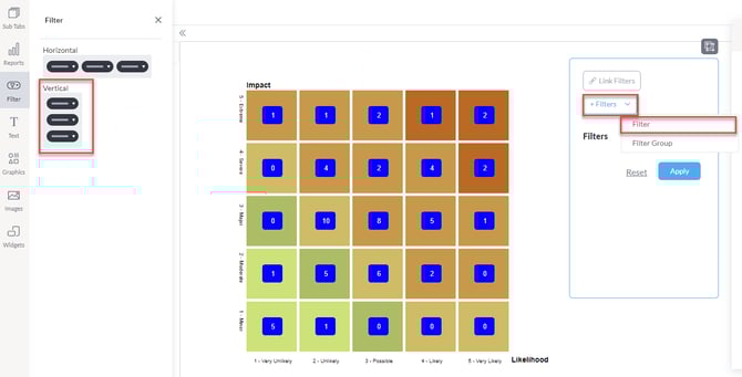 اسحب وأفلت مرشحًا رأسيًا يرتبط مع مصفوفة المخاطر.