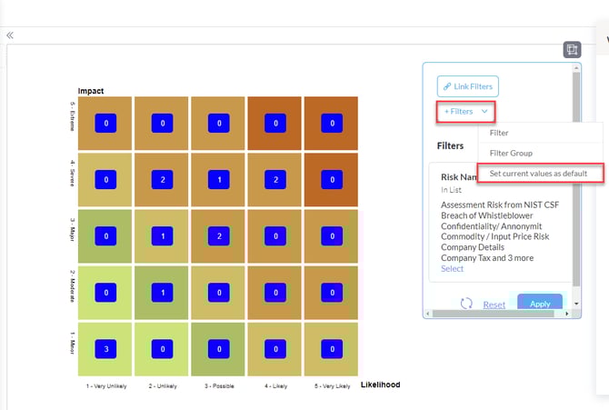 ثم اختر + المرشحات مرة أخرى وهذه المرة، تعيين القيم الحالية كافتراضية لحفظ إعدادات المرشح الحالي.
