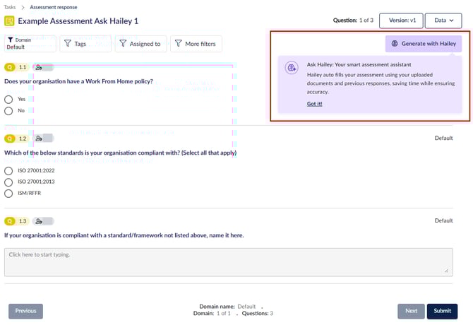 استخدم Hailey لتبسيط وتعزيز ردود منظمتك على أسئلة التقييم