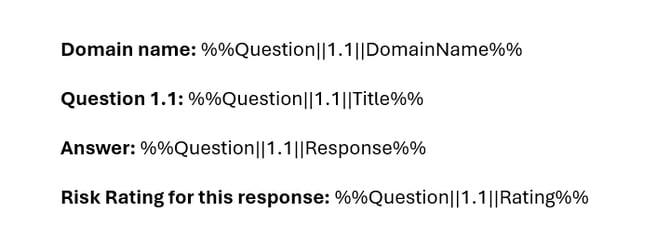 الصق العنصر النائب في قالب تقرير Word الخاص بك. ستحتاج إلى نسخ الحقول لكل سؤال.