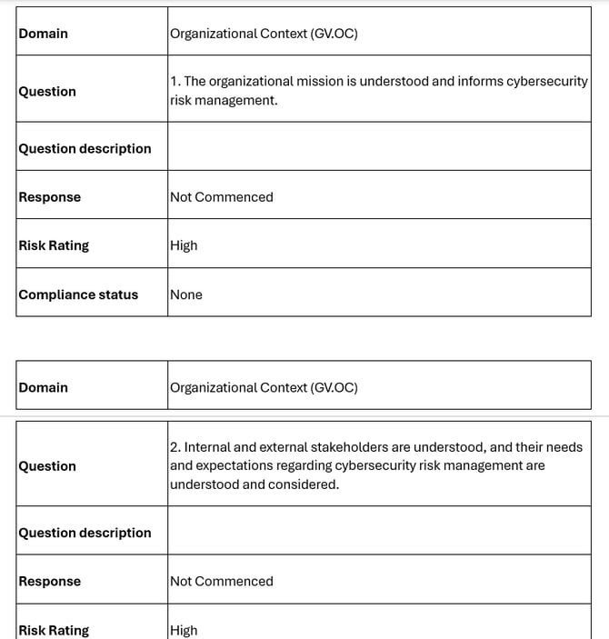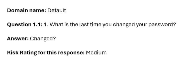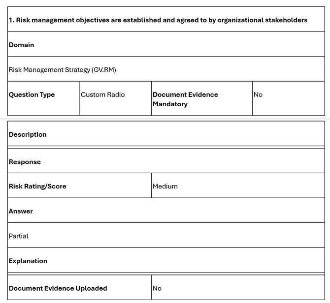 إذا لم يكن لأي سؤال في التقييم مشكلات أو مخاطر مرتبطة بإجاباته، فلن تظهر هذه الجداول لذلك السؤال.