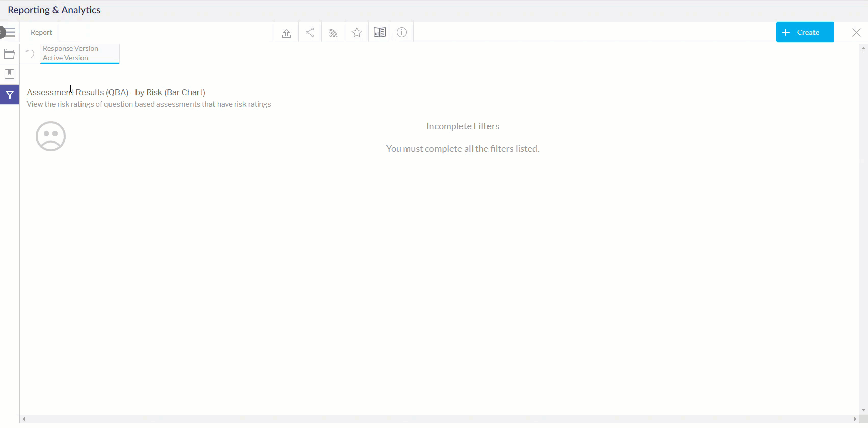 اختر المرشحات المناسبة لعرض مختلف تقييمات QBA وتوليد تقرير. ليست جميع خيارات المرشحات إلزامية. وستُشار إلى الخيارات الإلزامية بنقطة حمراء.