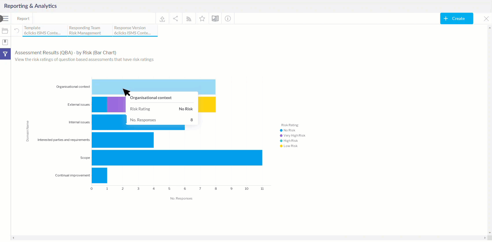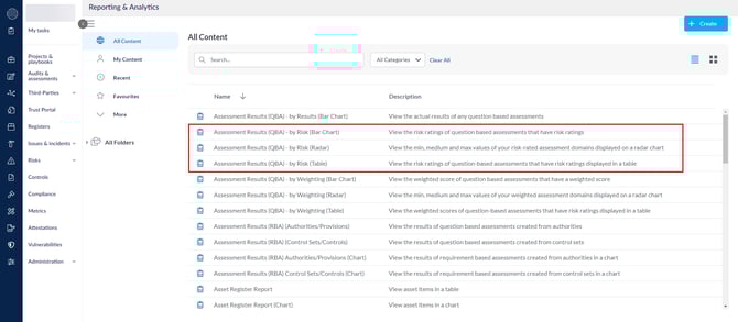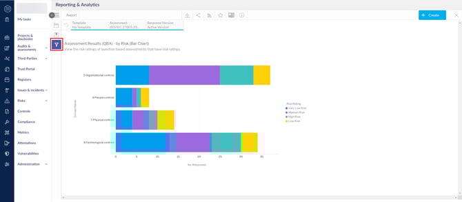 انقر على استعراض واختر أحد تقارير نتائج التقييم (التقييم القائم على الأسئلة) - حسب المخاطر. في هذا المقال، سنستخدم تصور مخطط الأعمدة.
