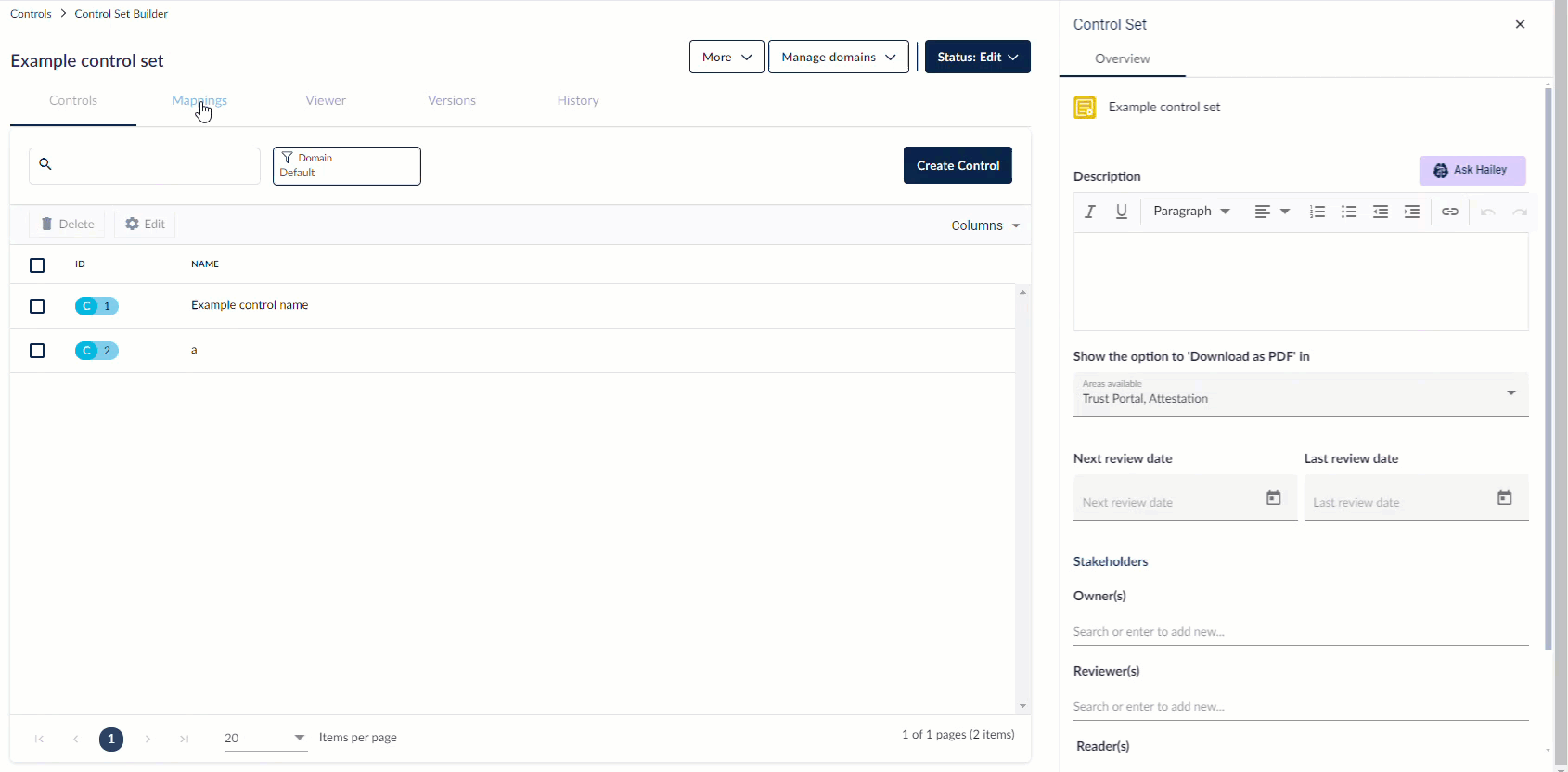 هناك طريقتان لتعيين مجموعة ضوابط لوثيقة السلطة. يمكنك إما القيام بذلك يدويًا أو الحصول على بعض المساعدة من Hailey AI، ثم مراجعة النتائج وإجراء التعديلات حسب الحاجة.
