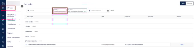 هنا، يمكنك رؤية جميع المهام التي تُعد جزءًا من المسؤوليات المرتبطة بالضوابط في هذه المجموعة.