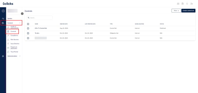 أنشئ مجموعة ضوابط جديدة عبر النقر على إنشاء مجموعة ضوابط أو أضف مجموعة ضوابط إلى Hub من مكتبة محتوى 6clicks.