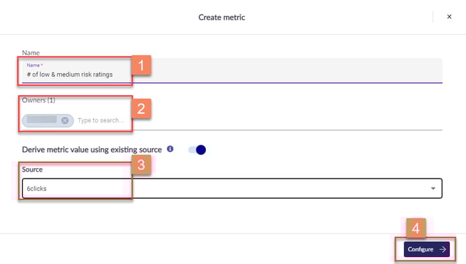 - تتيح لك وظيفة Edit metric تعديل إعدادات مقياسك مثل الاسم، والمالكين، والشروط، والصيغة.