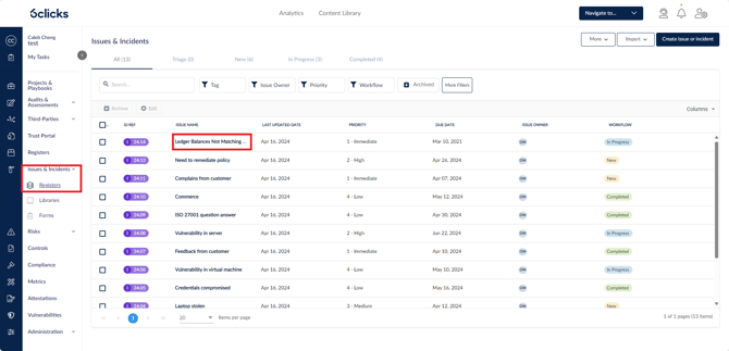 انتقل إلى المشكلات والحوادث > السجلات، ثم انقر على المشكلة التي ترغب في إنشاء مهمة لها.