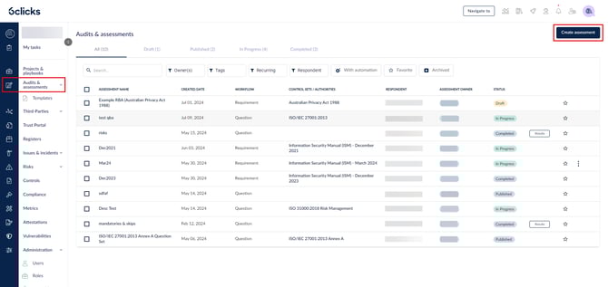 ابدأ بالتنقل إلى التدقيق والتقييمات والنقر على إنشاء تقييم.