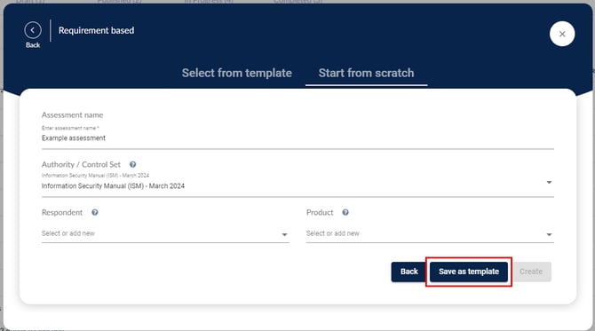 بمجرد أن تنتهي من تعبئة التفاصيل اللازمة، انقر على الحفظ كقالب بدلاً من إنشاء التقييم.