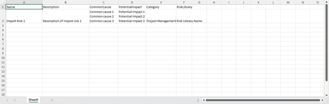 حمّل جدول البيانات المكتمل الذي قمت بتحميل القالب منه، ضمن المزيد > استيراد المخاطر.