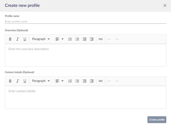 ملفات تعريف Trust في البوابة يمكن استخدامها لمشاركة المعلومات والتقييمات مع الأطراف المعنية. يتم التحكم في الوصول على مستوى الملف التعريفي الفردي.