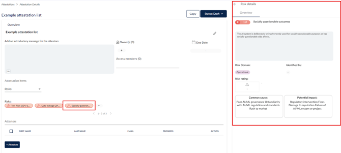 ستُضاف المخاطر الآن تحت عناصر التصديق. انقر على خطر لعرضه.