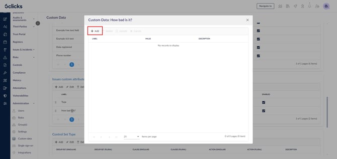 لإنشاء قيمة جديدة، انقر على إضافة.