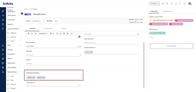 في علامة تبويب نظرة عامة للمشكلة، سيظهر الحقل إذا كان ممكّنًا. يمكنك اختيار عدة خيارات.