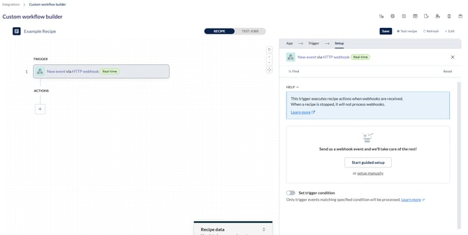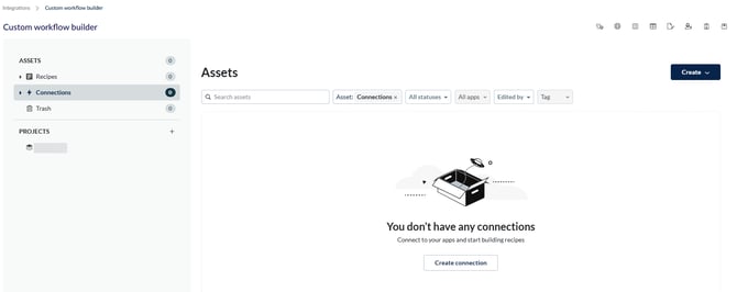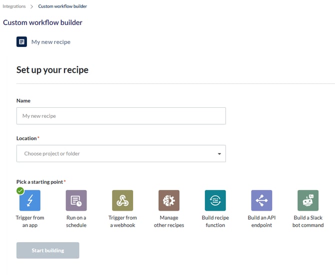 لا يتم إرسال أي بيانات إلى Workato حتى تشترك في منشئ سير العمل وتبدأ بتكوين الاتصالات والوصفات.