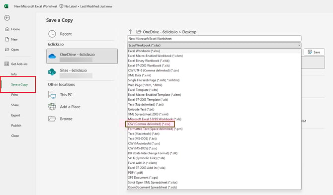 أولاً، تأكد من أن ملف المصدر الخاص بك هو بالفعل ملف CSV، وذلك بناءً على توافق أداة التحويل من CSV إلى JSON. إذا كان ملفًا بامتداد XLSX، يمكنك حفظ نسخة منه كملف CSV.