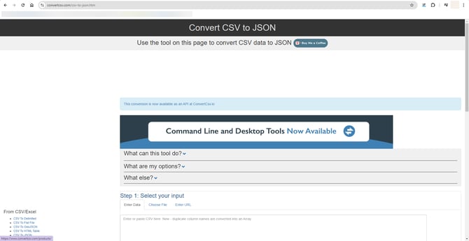 الخطوة التالية هي استخدام أداة لملء القالب باستخدام ملف CSV. في هذا المثال، سنستخدم هذه الأداة المجانية عبر الإنترنت، ولكن يمكنك استخدام أي برنامج مماثل آخر.