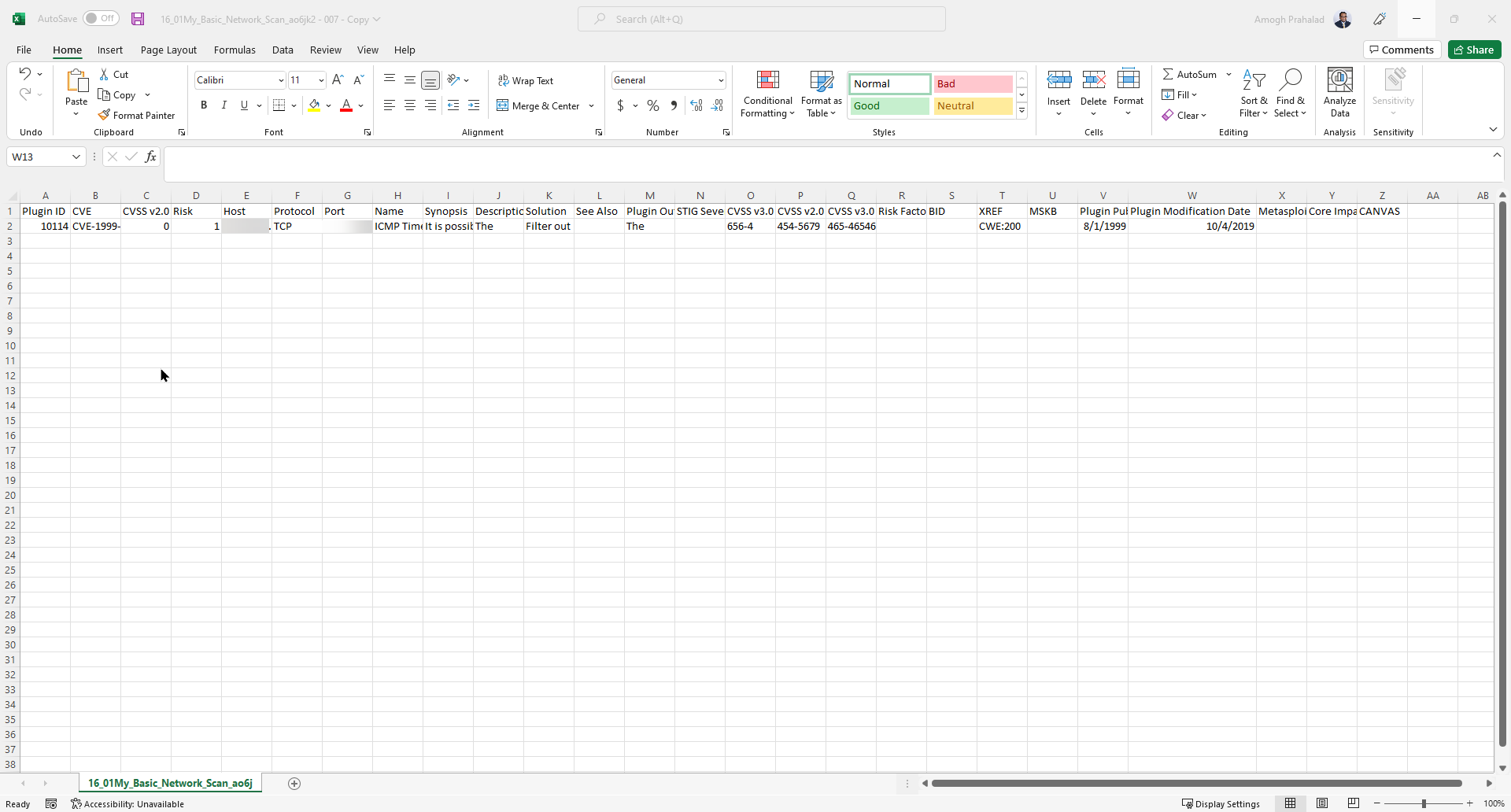 - المنفذ (حقل ملف الاستيراد) يتم تخطيطه إلى المنفذ (حقل 6clicks). نظرًا لأن الأصل المفحوص قد يحتوي على منافذ متعددة، فقد تظهر نفس الثغرة للأصل عبر عدة أسطر لكل منفذ. يتيح تخطيط المنافذ لـ 6clicks تجميع جميع المنافذ في أصل وثغرة واحدة.