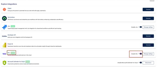 بمجرد الاتصال، ستظهر شارة "مفعل" بجوار التكامل. يمكنك إيقاف الاتصال مؤقتاً باستخدام زر التبديل الخاص به.