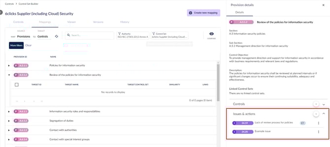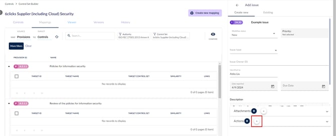 انقر على حكم قمت بتحديد فجوة فيه، مثل عدم وجود ضابط يعالجه، ثم انقر على + في اللوحة الجانبية بجانب Issues & tasks.