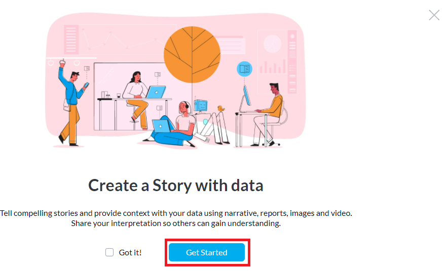 إن إنشاء القصص في لوحة التحكم بسيط وسهل للغاية؛ فهو يتيح لك إمكانية تقديم سياق لبياناتك باستخدام السرد، والتقارير، والصور، والفيديوهات.