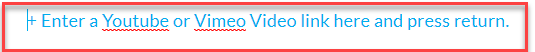 ثم أدخل أو انسخ والصق رابط فيديو من Youtube أو Vimeo في الخانة واضغط Enter.