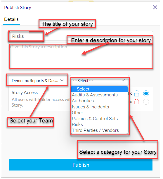 بعد الانتهاء من قصتك، يمكنك إجراء اللمسات النهائية من نافذة نشر القصة ثم انقر على نشر لنشر قصتك.