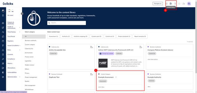 - فئة مكتبة المحتوى مثل استمرارية الأعمال، الأمن السيبراني، أو الفئة المخصصة الخاصة بك،