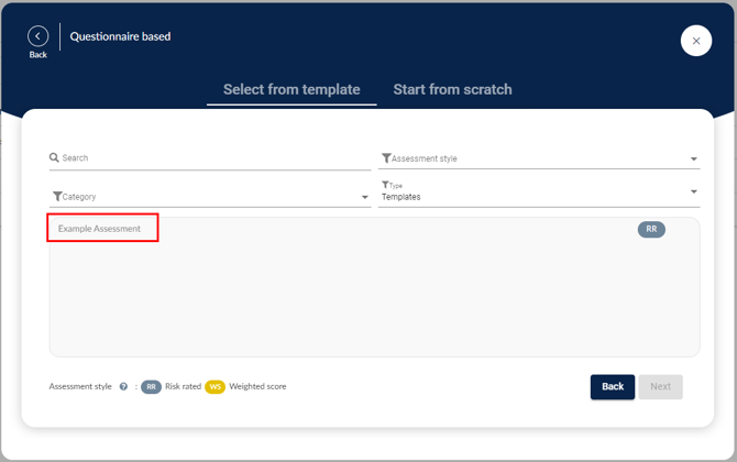 اختر تقييمًا موجودًا أو انقر على إنشاء تقييم.