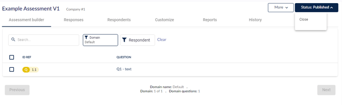 بمجرد إنشاء التقييم أو تحديده، انقر على القائمة المنسدلة الحالة وقم بتغييرها من مسودة، إلى الموافقة، ثم إلى النشر.