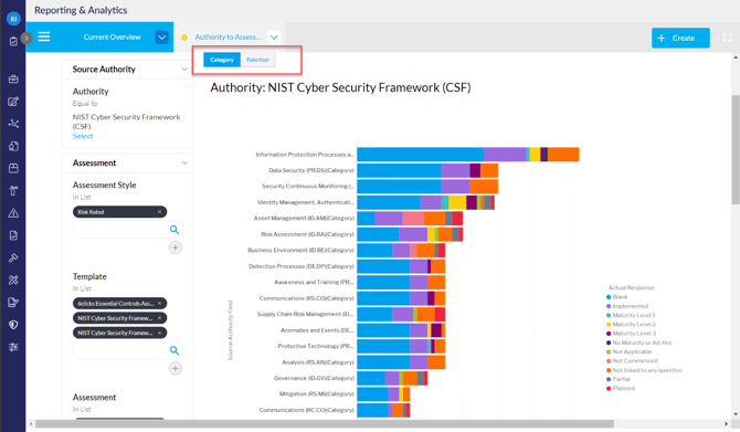 سينتج عن هذا الإجراء رسم بياني تفاعلي يعرض استجابات التقييم مجمعة حسب حقل سلطة المصدر المحدد. يمكنك بعد ذلك التعمق في الفئة أو الوظيفة.