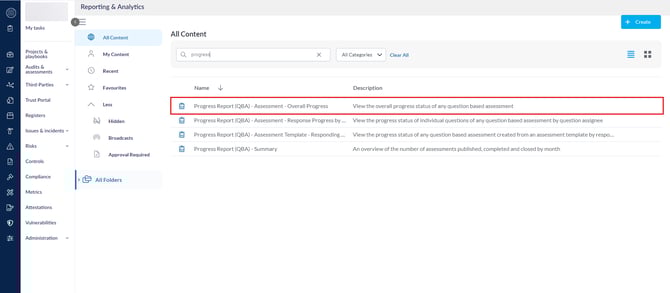 انقر على تصفح واختر تقرير تقرير التقدم - (التقييم القائم على الأسئلة) - التقدم العام.