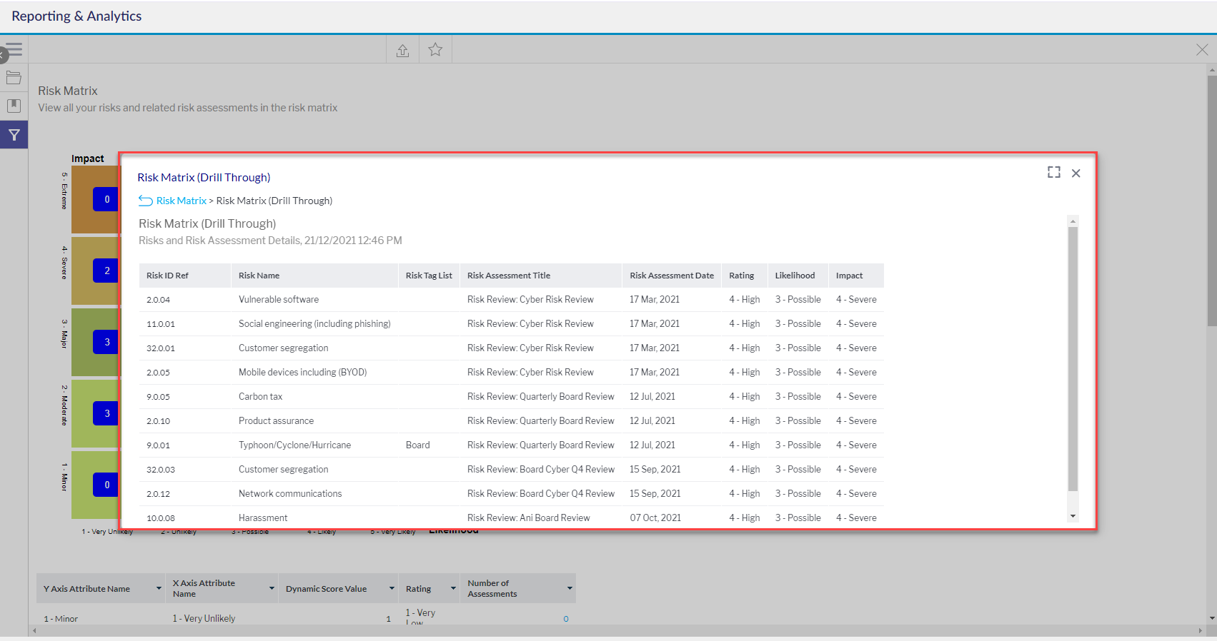اختر تقرير مصفوفة المخاطر.
