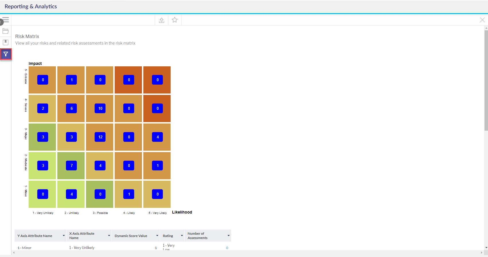 ستظهر خيارات التصفية. اختر المرشحات المناسبة لعرض مختلف المخاطر ثم قم بتطبيق اختياراتك لإنشاء تقرير. ليست كل خيارات التصفية إلزامية.