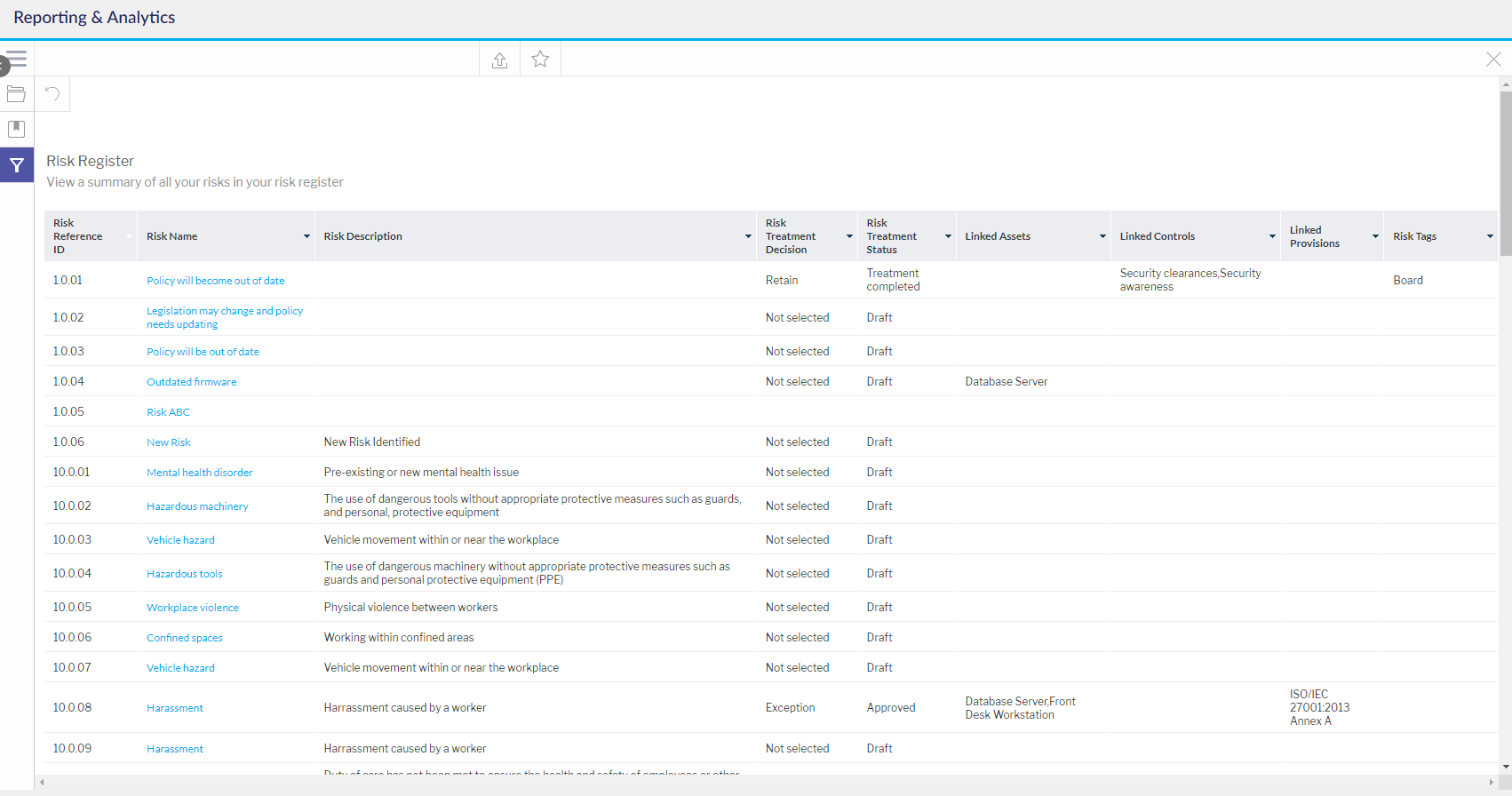 اختر تقرير سجل المخاطر.