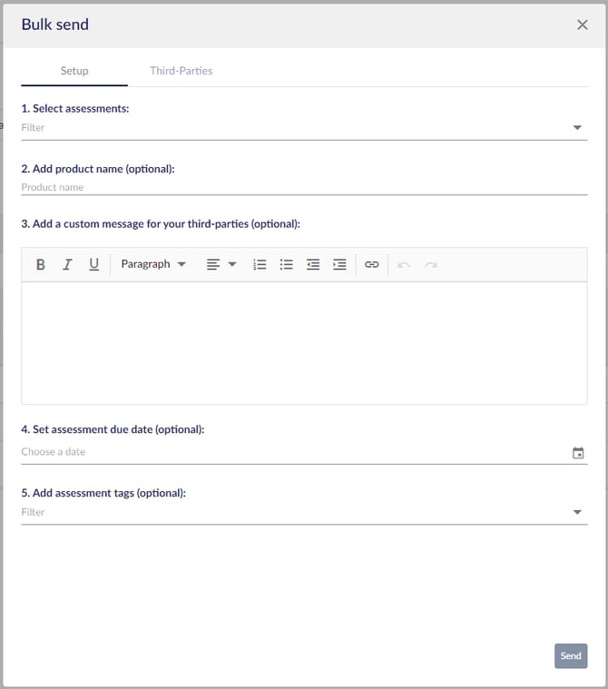 تعرف على كيفية إرسال التقييمات القائمة على الأسئلة (QBAs) بالجملة إلى الأطراف الخارجية/الموردين