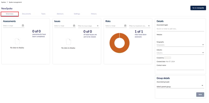 أثناء مراجعة Spoke معين، سيتم عرض علامات التبويب التالية: