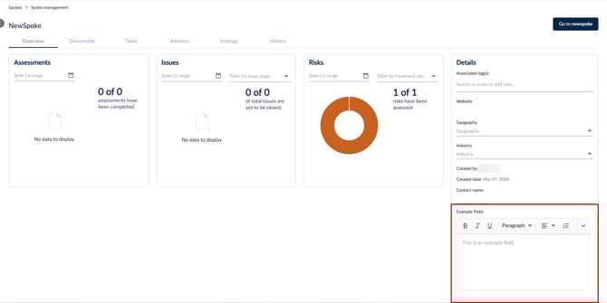 بمجرد إضافته وتفعيله، سيظهر الحقل في علامة التبويب نظرة عامة لكل Spoke.
