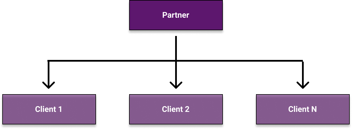 فريق الشركاء هو "الأب"، بينما فرق العملاء هي "الأبناء". يمكن لفريق الشريك أن يحتوي على فريق عميل واحد أو أكثر كـ"أبناء".