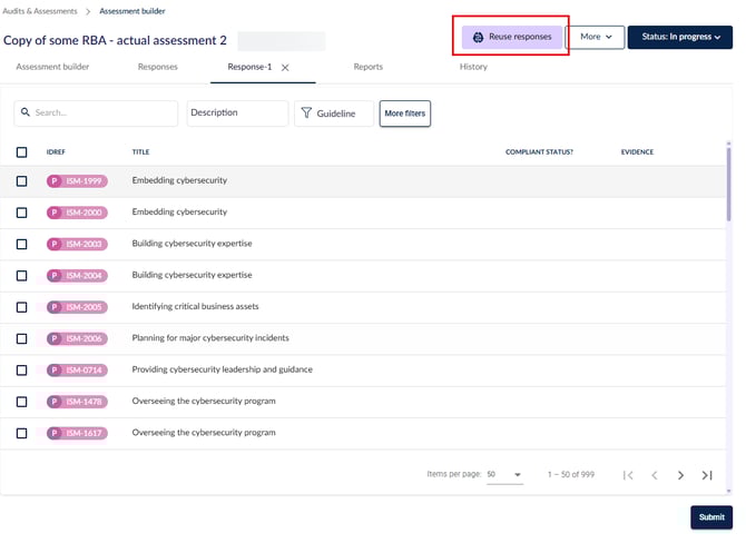 If at least one of the prerequisites noted above exists, once the assessment has been published, the Reuse responses button will be available when you are responding.