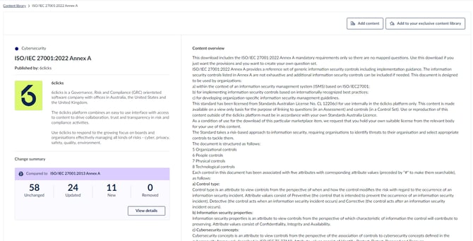 Click Add content to add it to your compliance module so you can create mappings or view the change log.