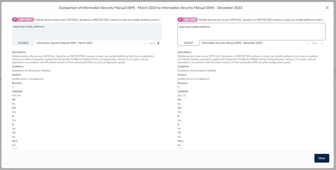 For example, if you have controls linked to ISM March 2023, and add ISM June 2024 to your environment, 6clicks can bridge the gap between multiple versions and link the closest equivalent provisions.