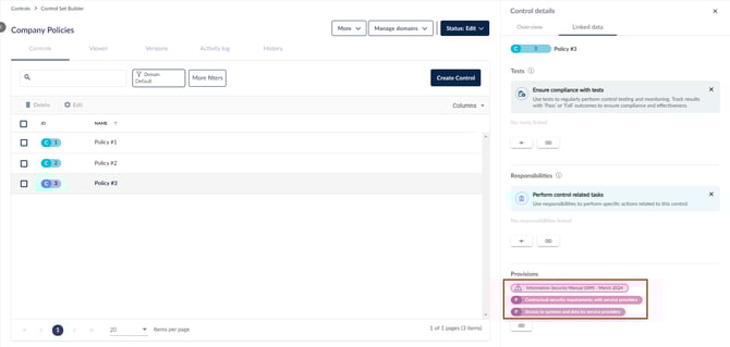 For automatic linking between controls and provisions to occur, there are a couple of prerequisites.