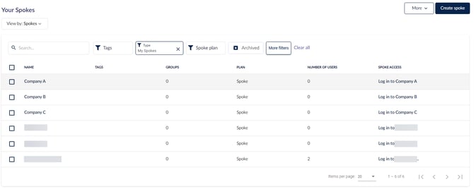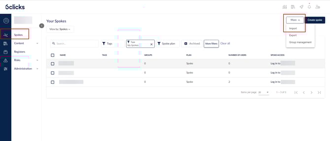 Navigate to Spokes from the left navigation panel in the Hub. Click More > Import.