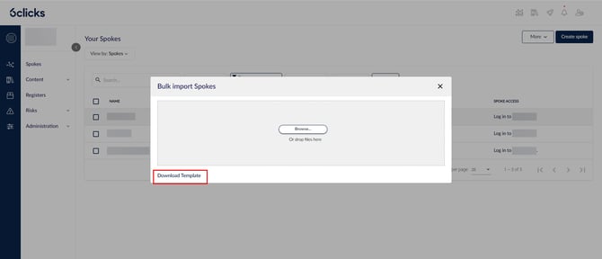 The Bulk import Spokes modal will appear, this allows you to import a list of customers.