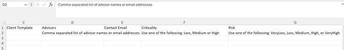The contact email cell in the Excel spreadsheet will populate the advisor's email in the Advisors tab.